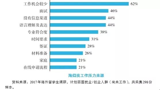 此外,回国就业也承受着一定的压力,从调查数据来看,留学生选择回国就业时的压力主要来源于工作机会较少和不熟悉面试方式,占比分别为62%和46%。此外,专业符合程度也是影响留学生回国就业的重要因素。