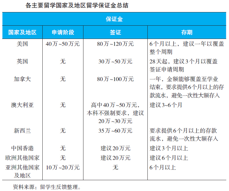 各个国家和地区对存款证明的要求受当年签证政策、学生申请阶段及学校要求等因素的影响,其保证金金额及存期要求会有所变动。